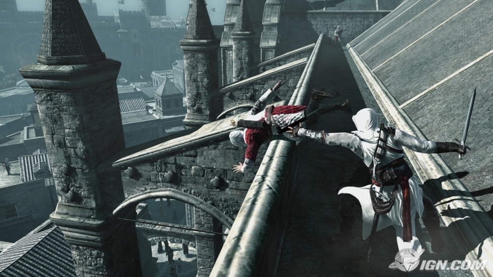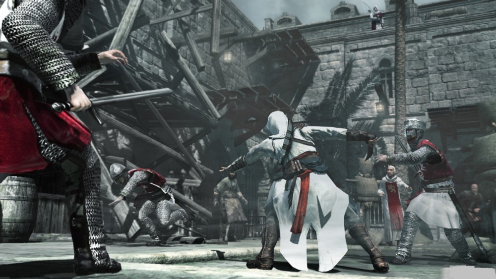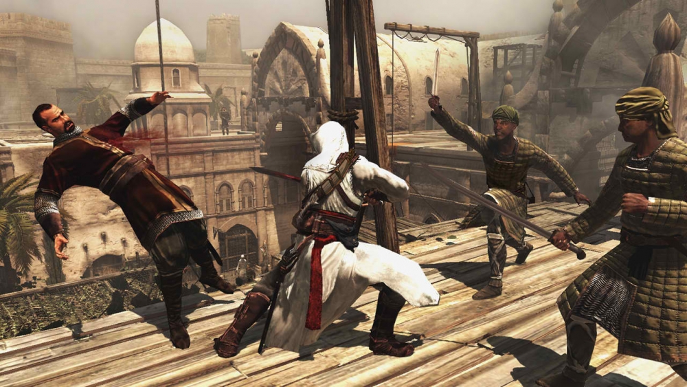 Всем привет! В первую часть игры Assassin’s Creed я играл еще в далеком 2007 году, она вроде и вышла в том же году, и пройдя всю игру, я навсегда остался поклонником этой игры. Позже начали выходить, и другие эпизоды этой и это игры, я играл во все части. И в настоящее время, я нет, нет да и поиграю в какую-нибудь из более понравившихся серий этой игры. Представляю вашему вниманию картинки боевых сцен из игры Assassin’s Creed.