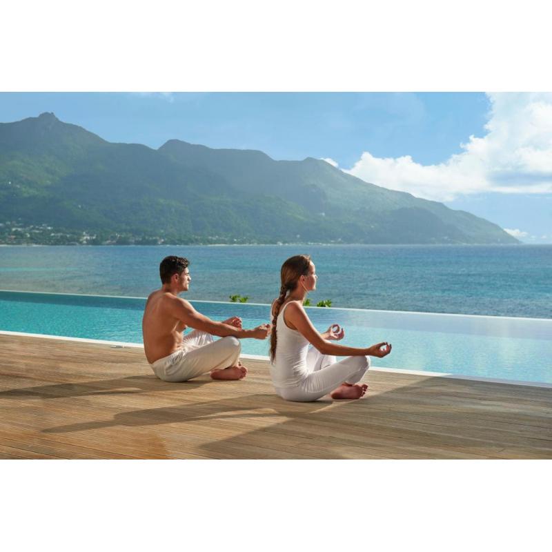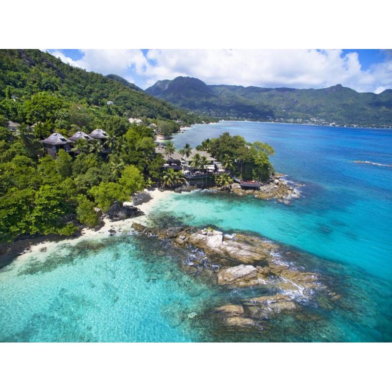 Отель расположен на живописном мысе в окружении тропического леса, великолепные просторные виллы отделанные деревом, захватывающий вид на остров Силуэт и Индийский океан , живописные закаты. В отеле два ресторана , Wave и Mahe, предлагают блюда европейской и креольской кухни , небольшая , но
