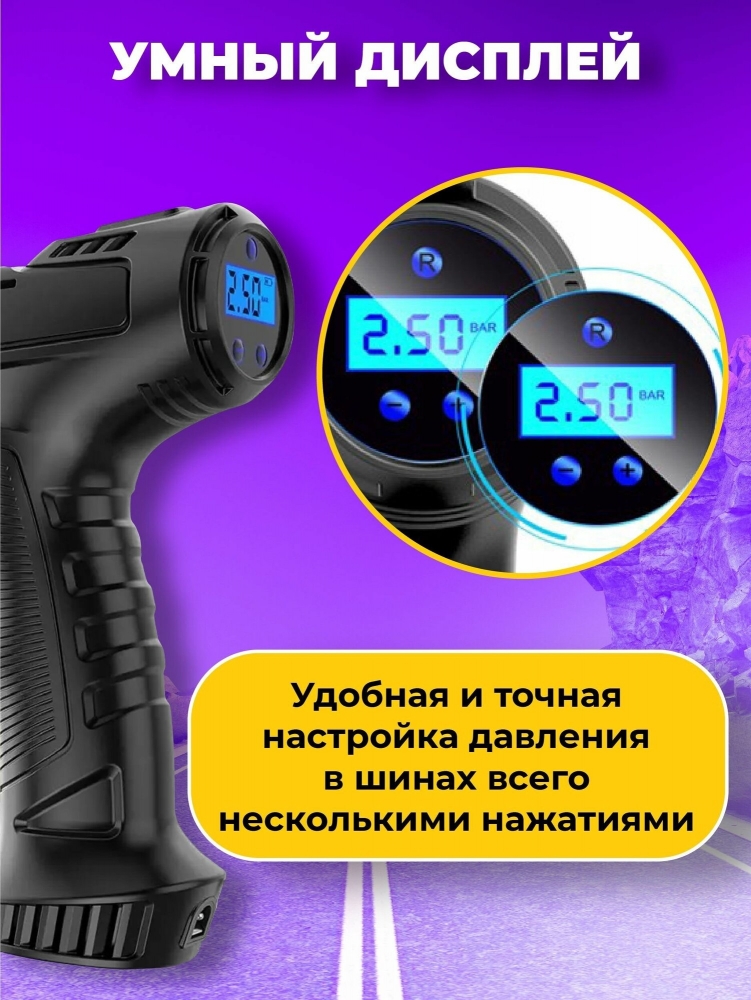 Умный "Пилот": Никаких Перекачиваний! 🧠 Вот это, пожалуй, самое главное новшество, которое оценят даже самые неподкованные в технике пользователи. Компрессор не просто "качает", он думает за вас! Он оснащен автоматическим регулятором давления и ярким ЖК-дисплеем. Вы просто выставляете нужное давление (например, 2.2 атмосферы для своей машины), нажимаете кнопку, и компрессор делает всё сам. Он сам отключится, когда достигнет заданного значения. 🥳 Больше никаких "на глаз" или беготни к колесу с отдельным манометром, чтобы понять, хватит ли. Это не только удобно, но и безопасно: перекачанные шины – это риск на дороге, а недокачанные – быстрый износ и повышенный расход топлива.