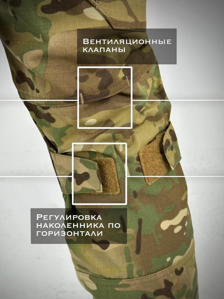 Над коленом и с его боковой стороны есть регулировка наколенника. Ты можешь настроить его положение по горизонтали и вертикали, чтобы защита всегда была именно там, где она нужна. А в клапан колена можно установить специальные вставки типа Gen 3/4. Это могут быть обычные мягкие наколенники для комфорта, а могут быть и с баллистической защитой (если вдруг ты, например, любишь пострелять в тире или работаешь в таких условиях).