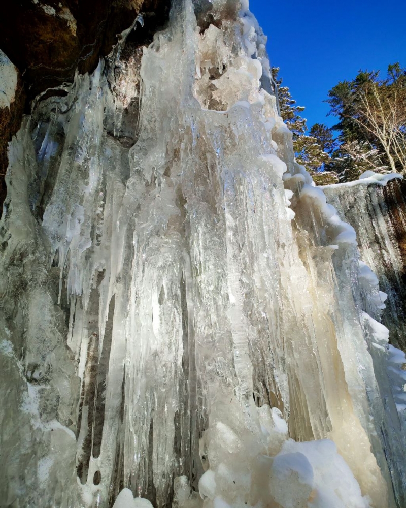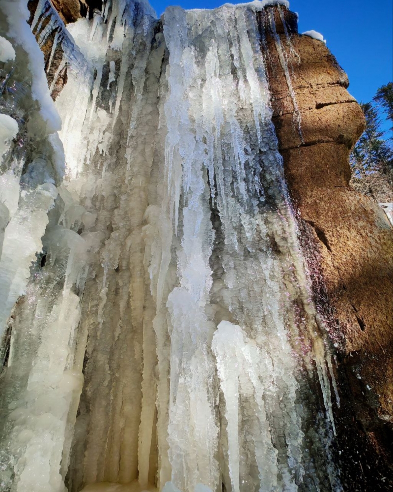 И вот мы стоим перед ним... перед этим чудом застывшей воды! 🤯 Друг мой, это не просто водопад, который замерз. Это целое произведение искусства природы, гигантская ледяная скульптура, которая словно остановила время. Посмотри на фотографию – это же невероятно!