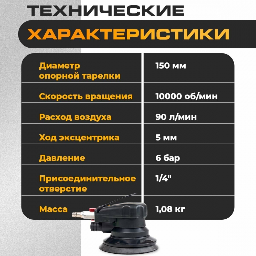 Эксцентриковая шлифмашина пневматическая, 150 мм, 10 тыс. об./мин, 1/4"