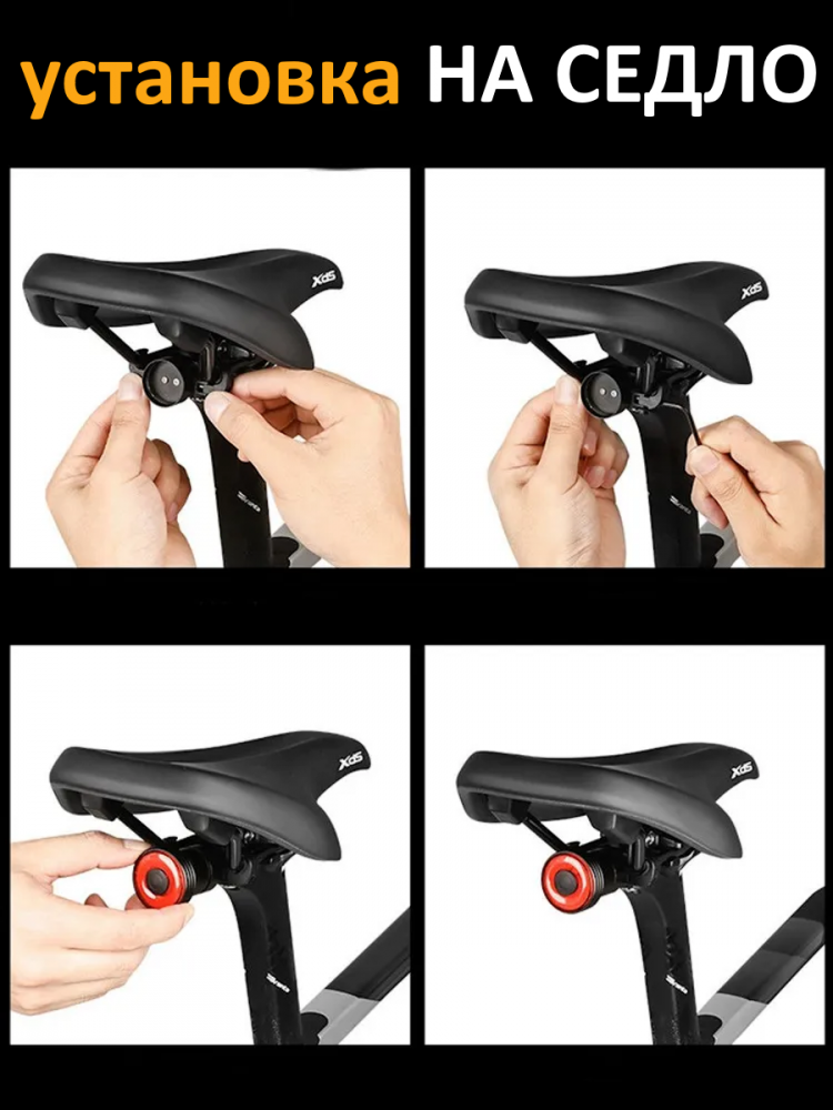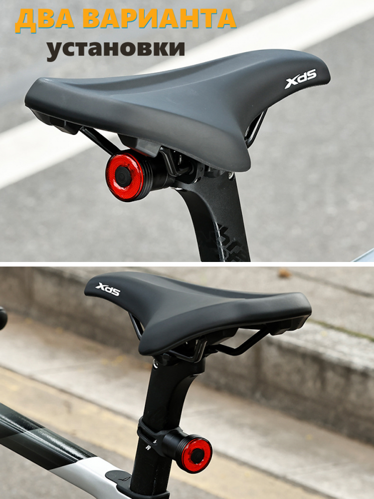 Надежное крепление: Он легко фиксируется как на подседельный штырь, так и на седло. В комплекте идут специальные прорезиненный ремень и хомуты. Всё без всяких инструментов! Просто закрепил – и готово.