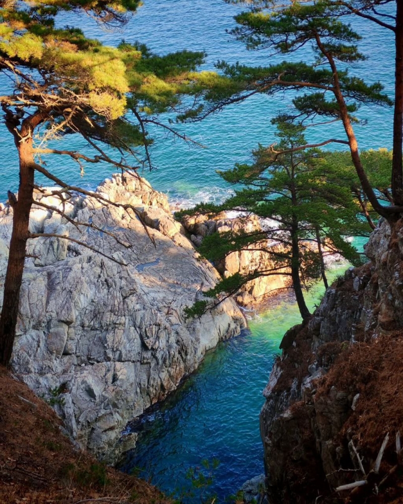 Но Гамова – это не только вода. Это еще и его уникальный ландшафт. Эти могучие, поросшие лесом сопки, которые плавно переходят в отвесные скалы, обрывающиеся прямо в море.