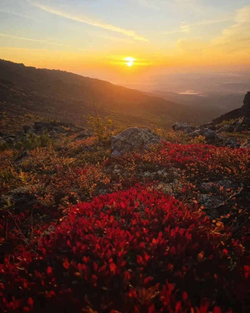 Осень на Северном Урале, особенно на склонах Серебрянского камня, – это не просто картинка. Это ощущение. Это история, написанная природой миллионами золотых и багряных листьев, а эти огненно-красные кусты – это вишенка на торте! Это момент, когда ты чувствуешь себя по-настоящему живым, вдыхая этот холодный, чистый воздух и глядя на бескрайние просторы, залитые закатным солнцем.