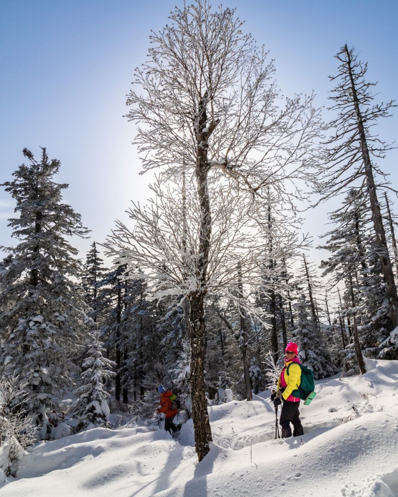 Помнишь, как в сказках, когда принцесса просыпается, и весь лес вокруг начинает сиять? Вот у нас было примерно так же, только без принцесс, зато с нами, такими яркими и довольными! 😉 Особенно мне запало в душу это дерево на переднем плане – такое одинокое, но величественное, полностью усыпанное инеем. Каждая его веточка, даже самая тоненькая, была окутана в тончайшее кружево. А на фоне этого сияния так классно смотрятся наши яркие куртки! Моя желтая и твоя (или чей там еще) оранжевая – это просто цветовой взрыв на белом фоне! 💛🧡🎒 Это добавляло такой бодрости и праздничного настроения, что хотелось просто идти и петь!