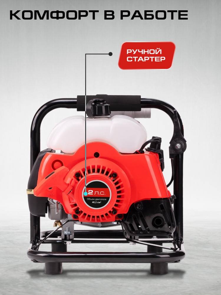 Зато плюсы в том, что двухтактники обычно легче и компактнее, да ещё и мощность при этом получается отличная. Для такой мотопомпы – отличный вариант.