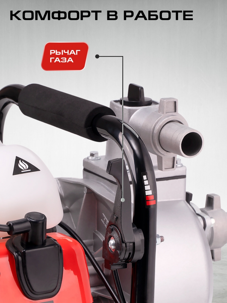 Объём двигателя 42.5 куб. см и мощность – ровно 2 лошадиных силы. Что это значит для тебя на практике? Помпа не просто "качает", она делает это с большой производительностью и способна работать в достаточно суровых условиях. Коротко: мощность есть, чтобы справляться с разными задачами — будь то пожаротушение или заливка участка.