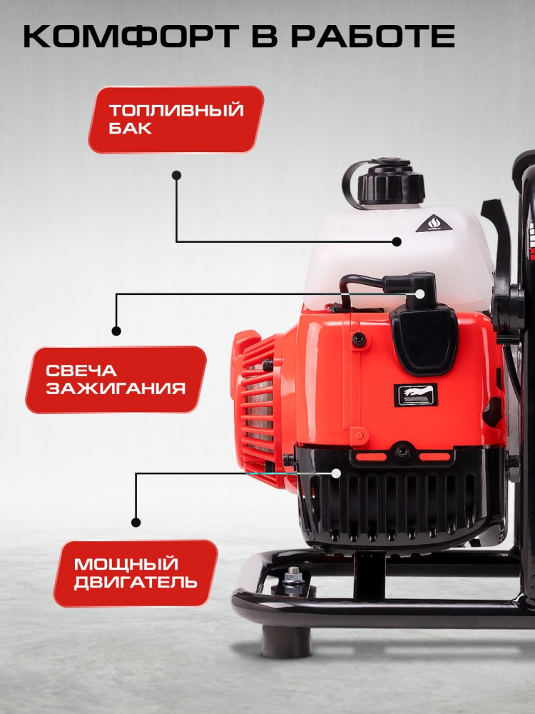 Почти литр бензина в резервуаре гарантирует большую автономность, и тебе не придётся каждые полчаса бегать к канистре, чтобы топить двигатель.