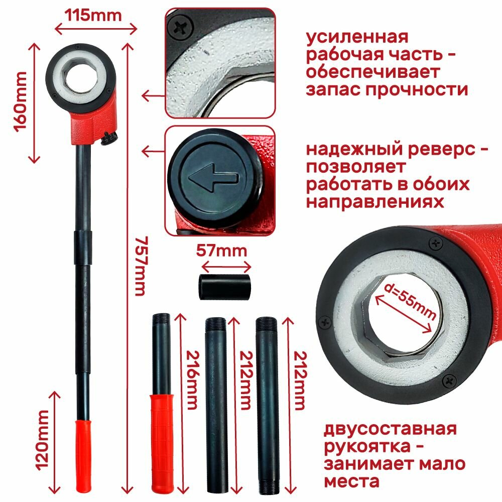* Удлинитель для трещотки есть, 2шт (2 секции): А вот это уже *высший пилотаж удобства*! Если труба находится глубоко или в неудобном месте, ты просто соединяешь эти две секции удлинителя и достаёшь до самого удалённого уголка. Никаких акробатических этюдов!