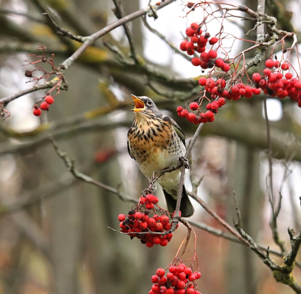 Красота в мелочах: Иногда для счастья достаточно просто поднять глаза и заметить, как маленькая зеленушка деловито выковыривает семечки из ягоды, или как стая дроздов шумно оккупирует дерево.
