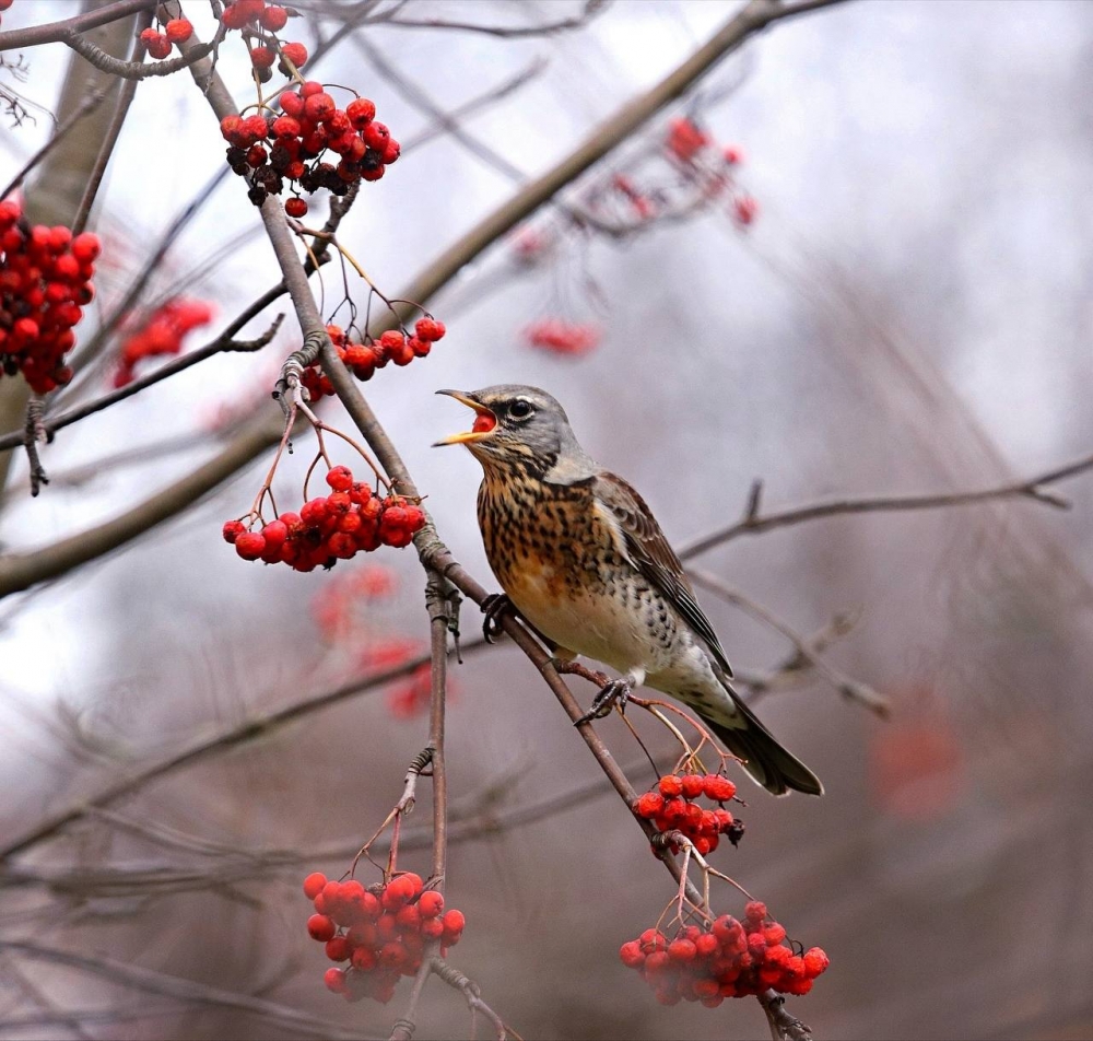 Долгоиграющий деликатес: Ягоды рябины могут висеть на ветках довольно долго, даже после первых морозов. Они замерзают, потом оттаивают, становятся еще мягче и слаще. Это такой природный запасник, который выручает птиц, когда другой еды уже совсем нет.