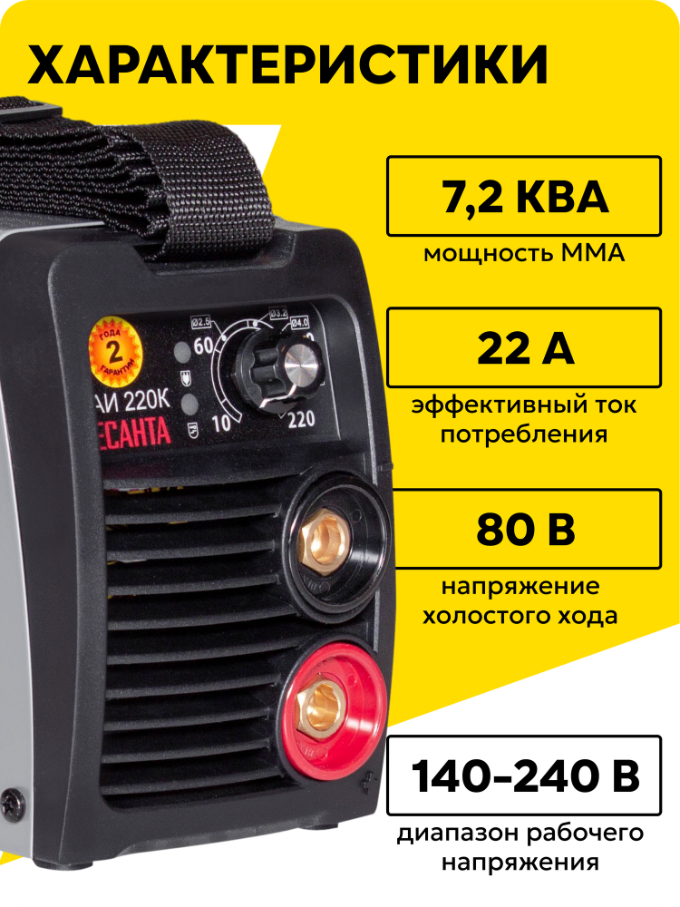 Сам инверторный сварочный аппарат Ресанта САИ220К.