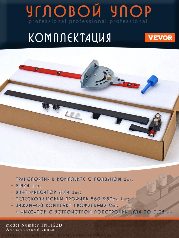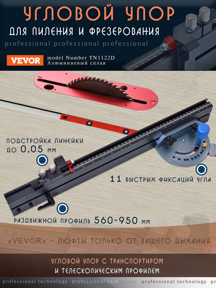 Телескопический профиль: Длина профиля регулируется от 560 до 950 мм! Это значит, что вы можете работать с заготовками разной длины, не ограничивая себя. Как будто у вас есть свой личный "удлинитель" для точности! 📏