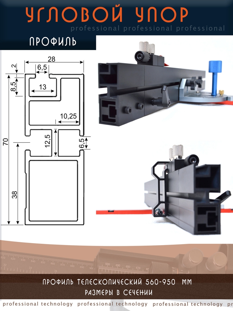 Телескопический профиль – это как раз тот самый угловой упор, только прокачанный до максимума! Он предназначен для работы на фрезерных столах, циркулярных и ленточных пилах. Основная задача – обеспечить точный угол распила. Проще говоря, это ваш лучший друг в мире ровных линий и правильных углов. 😉