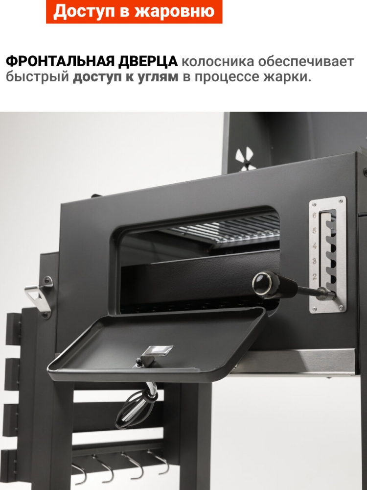 Точный контроль жара: Возможность регулировать расстояние до углей – это огромный плюс для получения идеального результата.