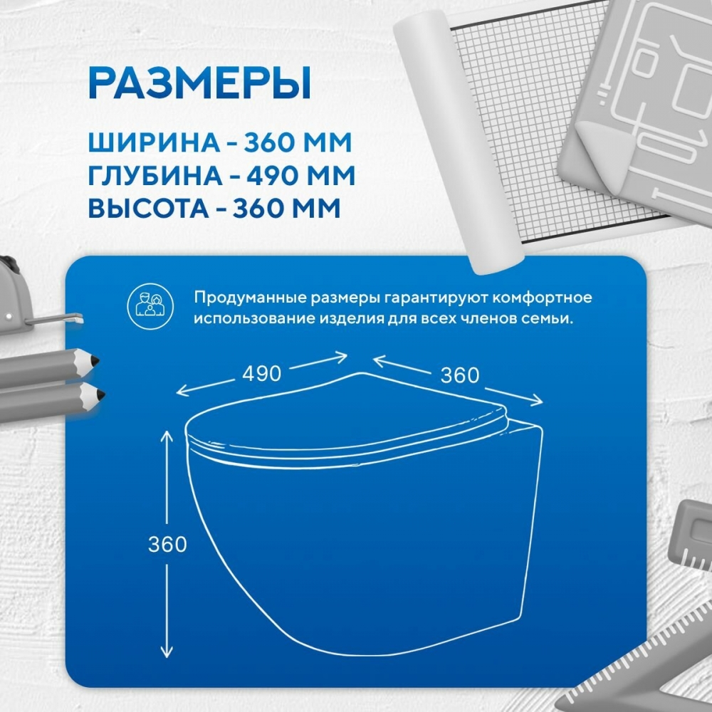 Компактные Размеры (490х360х360 см): Да, такие габариты – это спасение для небольших ванных комнат. Унитаз не займет много места, но при этом будет очень функциональным. 😉