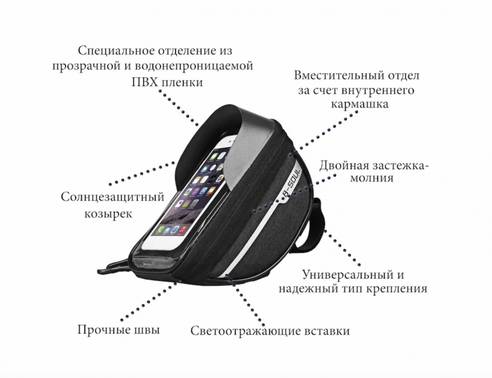 В итоге, выбирая велосипедную сумку на руль с держателем для телефона, ты получаешь: