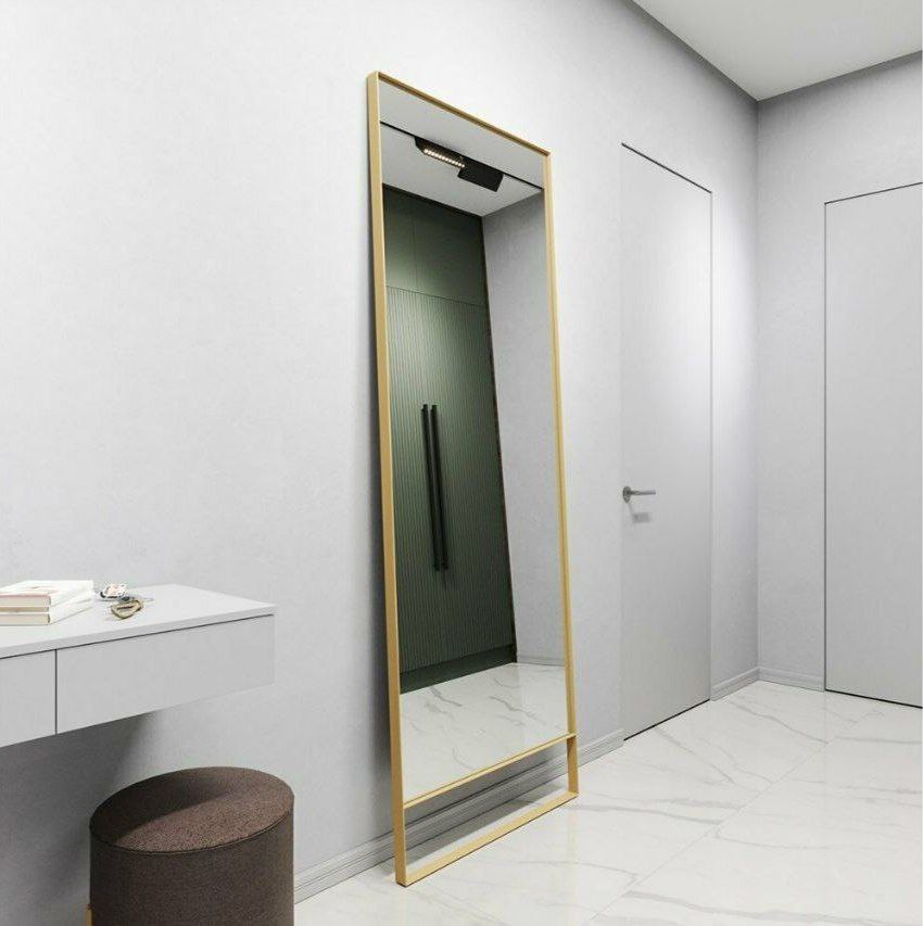 Особенности: Зеркало с матовой порошковой окраской и золотой рамой (судя по LEG GOLD) – это тренд! Оно может использоваться как напольное, так и настенное. Slim Leg намекает на изящные ножки, если оно напольное.