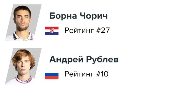 В финальной игре на теннисный корт вышли хорватский теннисист Борна Чорич и россиянин Андрей Рублев.
