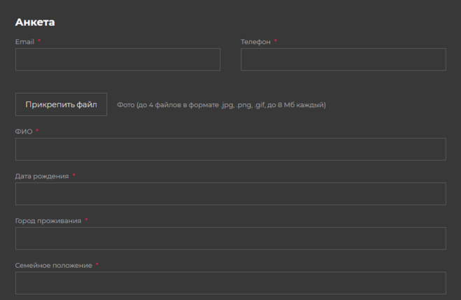 Вот такая анкета приблизительно по ссылке будет, только чуть длинее.