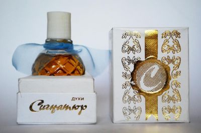 В моё позднесоветское детство любимыми духами стали болгарские "Сигнатюр" - страшный дефицит, пару флакончиков добыла и прислала тётя. Очень сладкие духи в круглом ребристом "под хрусталь" флакончике , горлышко которого было повязано голубой капроновой ленточкой. Сейчас "Ален Мак" уже не выпускает их - сомневаюсь, что они пользовались бы популярностью в наше время, это просто на безрыбье они казались мне очень приятными.