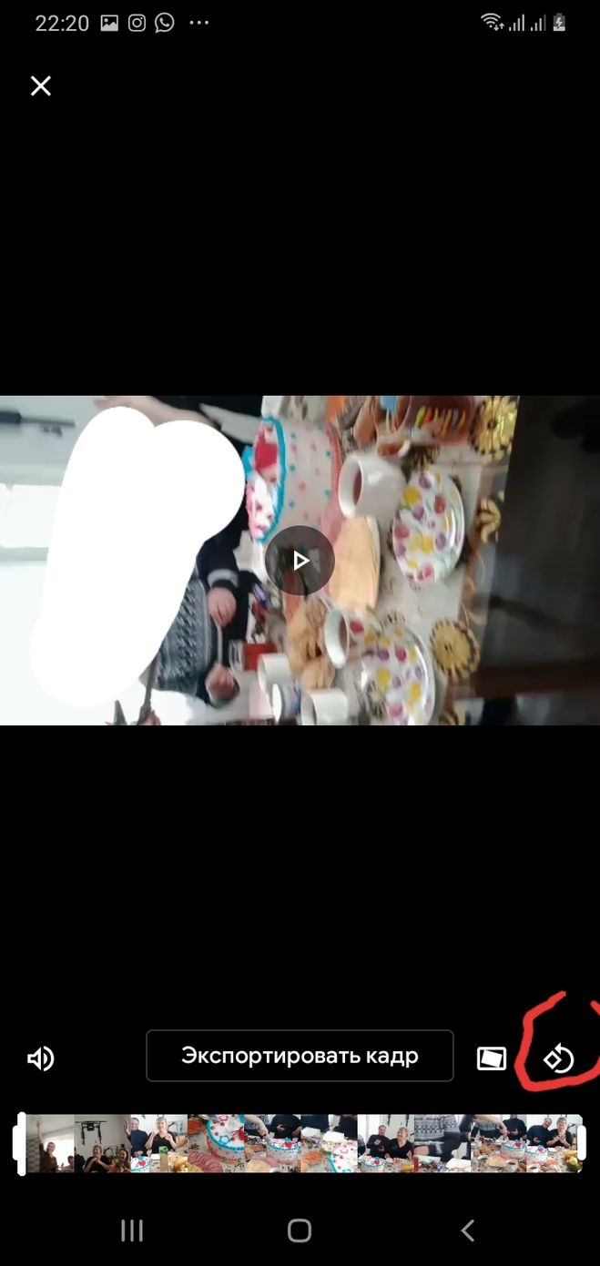 Затем видим значок разворота видео и разворачиваем видео в нужное положение. Жмём сохранить и всё, ваше видео сохранится в правильном положение в вашем телефоне.