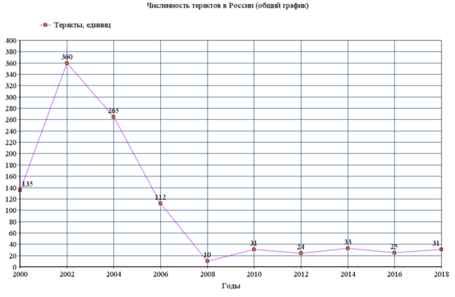 На самом деле это не так. Вы просто видимо один из достаточно значительного количества оптимистов (мало информированных пессимистов). реально статистика говорит о другом: массовый терроризм в стране (если не брать лихие 90-е) был с 2000 по 2005 годы. Тогла их количество доходило до 360 в год. То есть практически ежедневно. Сегодня это в десятки раз меньше. От 10 до 30 терактов в год. Официальная динамика вот такая: