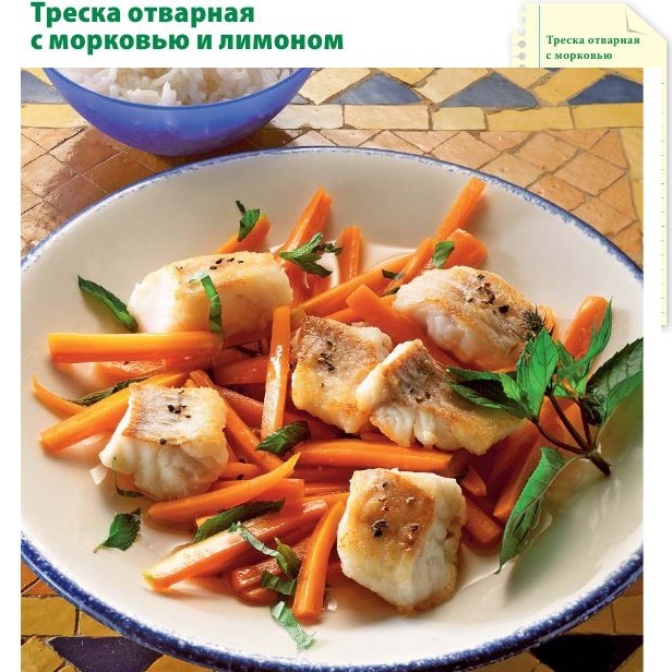 треска 600-800 грамм морковь 3 шт. корень сельдерея 1 шт. лист лавровый 2 шт. перец душистый горошком 6 шт. лук репчатый 2 шт. лимон половинка масло сливочное 1 столовая ложка сольПриготовление: