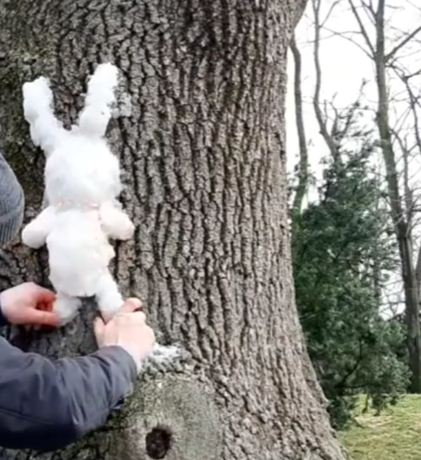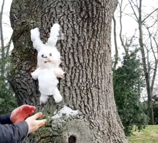 Как слепить символ года - "Заяц" на стволе/коре дерева или стене к НГ?