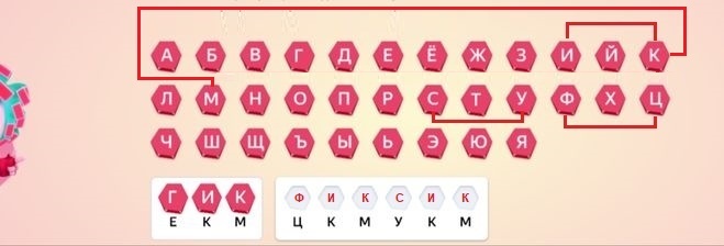 Тут для примера дано слово, по нему мы и должны разобрать эту систему, по которой из одних букв получились другие. Эта система легко разгадывается - все буквы второго слова предшествовали буквам первого слова на 2 шага. Отчитываем по очереди все буквы второго слова на 2 шага назад, и получилось слово - фиксик.