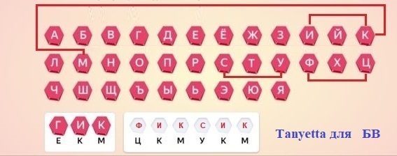Ц = Ф К = И М = К У = С К = И М = КУ меня получилось слово: фиксик.