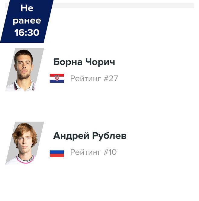 Ориентировочное начало финальной игры между Рублевым и Чоричем 16-30 по московскому времени.