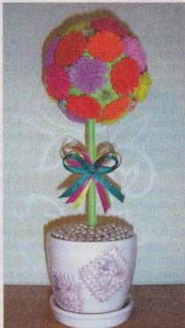 Кашпо с розочками Я давно увлекаюсь вязанием, особенно нравится создавать из ниток букеты цветов, Предлагаю создать красивый букет из розочек. Для работы потребуется: