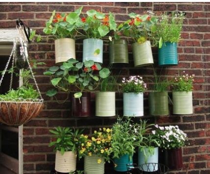 Жестяные банки, если их целая батарея собралась, могут стать основой для настоящего висячего сада