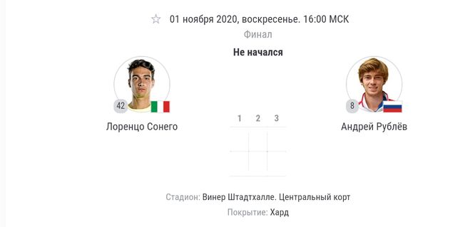 Теннис Сонего - Рублев 01.11.2020 покажут по ТВ? Во сколько? Где смотреть?