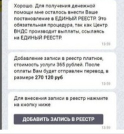 Дальше, могут предложить перевести некоторую сумму, которая "является оплатой юридической услуги и она требуется для проведения Вам платежа 270000 рублей". (смотрите на фото).