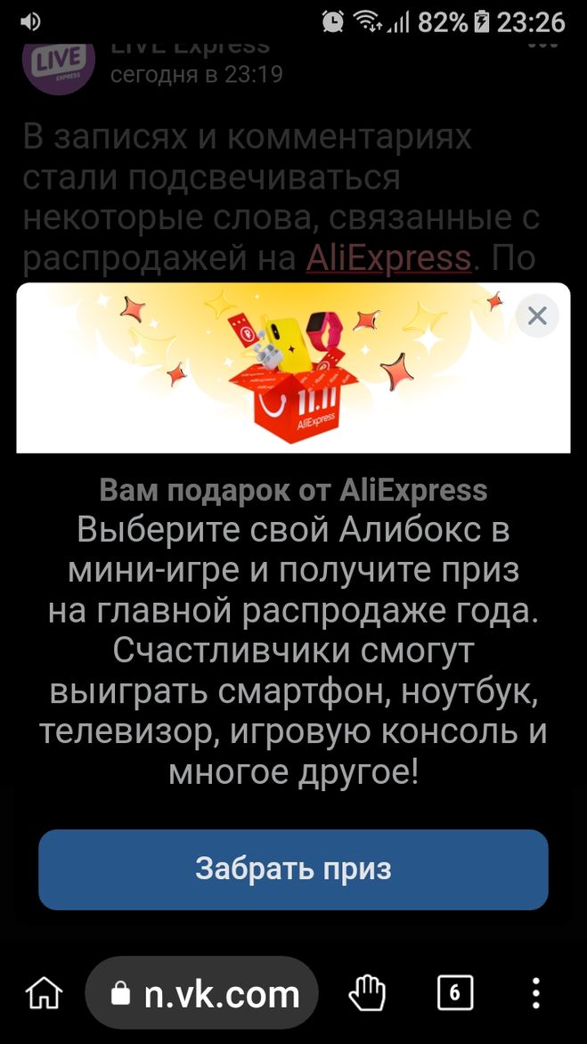 Эта акция просто огонь! Насколько я понял, для того чтобы выиграть призы нужно скачать и установить мобильное приложение: "ВКонтакте". Если оно уже есть, то перейти там по вкладке с надписью: "Алиэкспресс". Далее: "Выиграть призы в алибоксе".