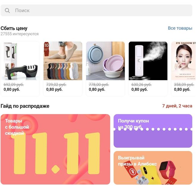 Поучаствовать в акции очень просто, для этого нужно скачать приложение вконтакте "Алиэкспресс", если приложение уже у вас скачано, значит переходим на главную страницу.