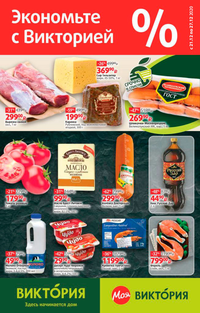 Новая акция с превосходными скидками на товары в супермаркетах "Виктория" пройдет в период с 21 по 27 декабря 2020 года.