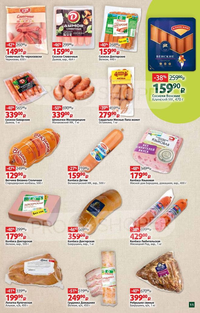 паштет из печени - 49 % скидка, сосиски сливочные -46 % скидка, шпикачки "Москворецкие" - 50 % скидка,